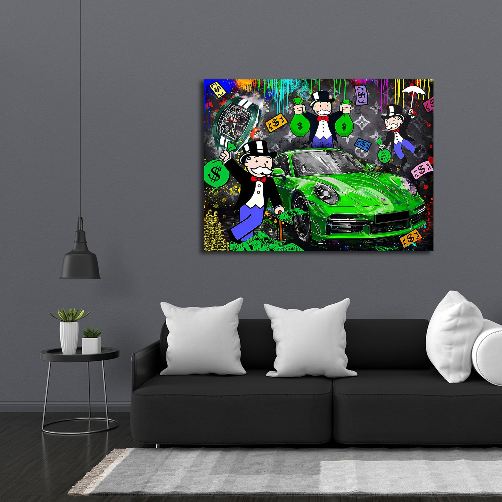 Auto verde lusso soldi orologio arte pop quadro