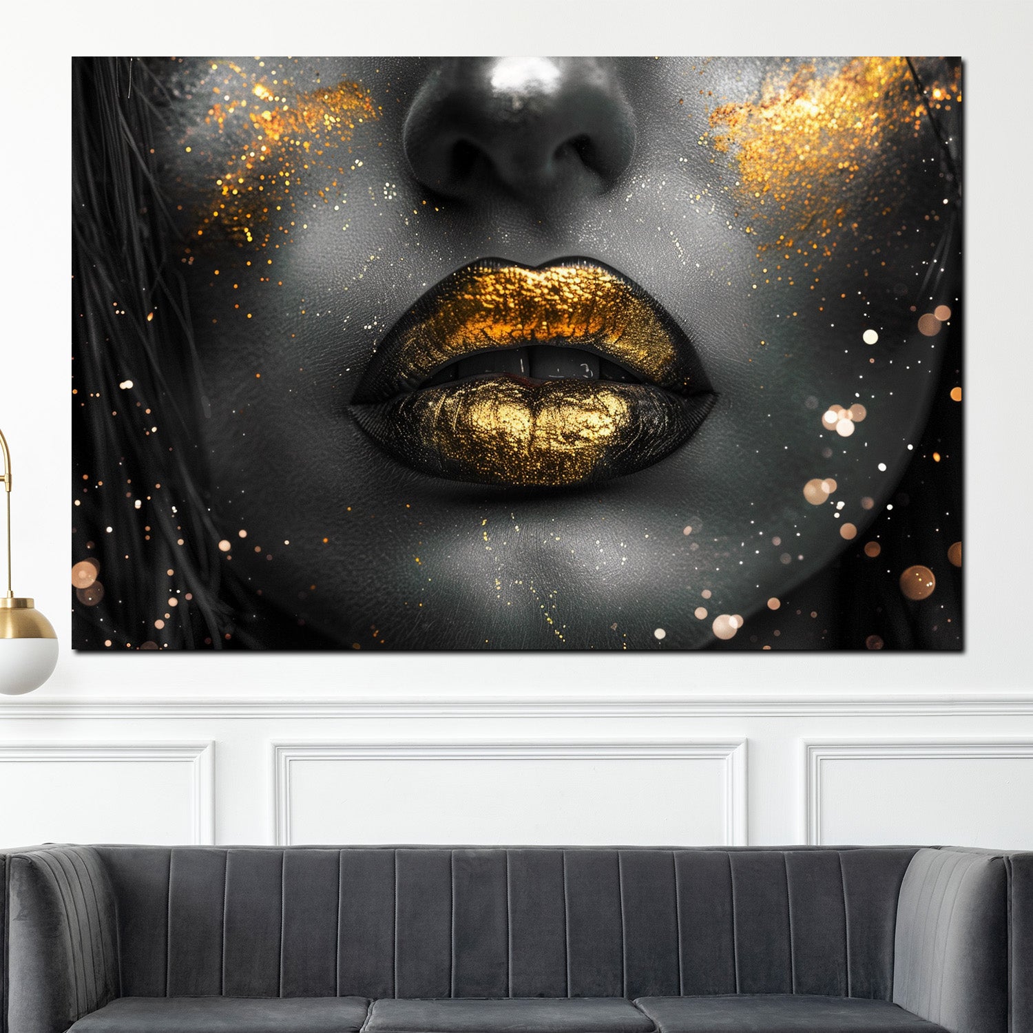 Quadro belle labbra dorate su sfondo nero