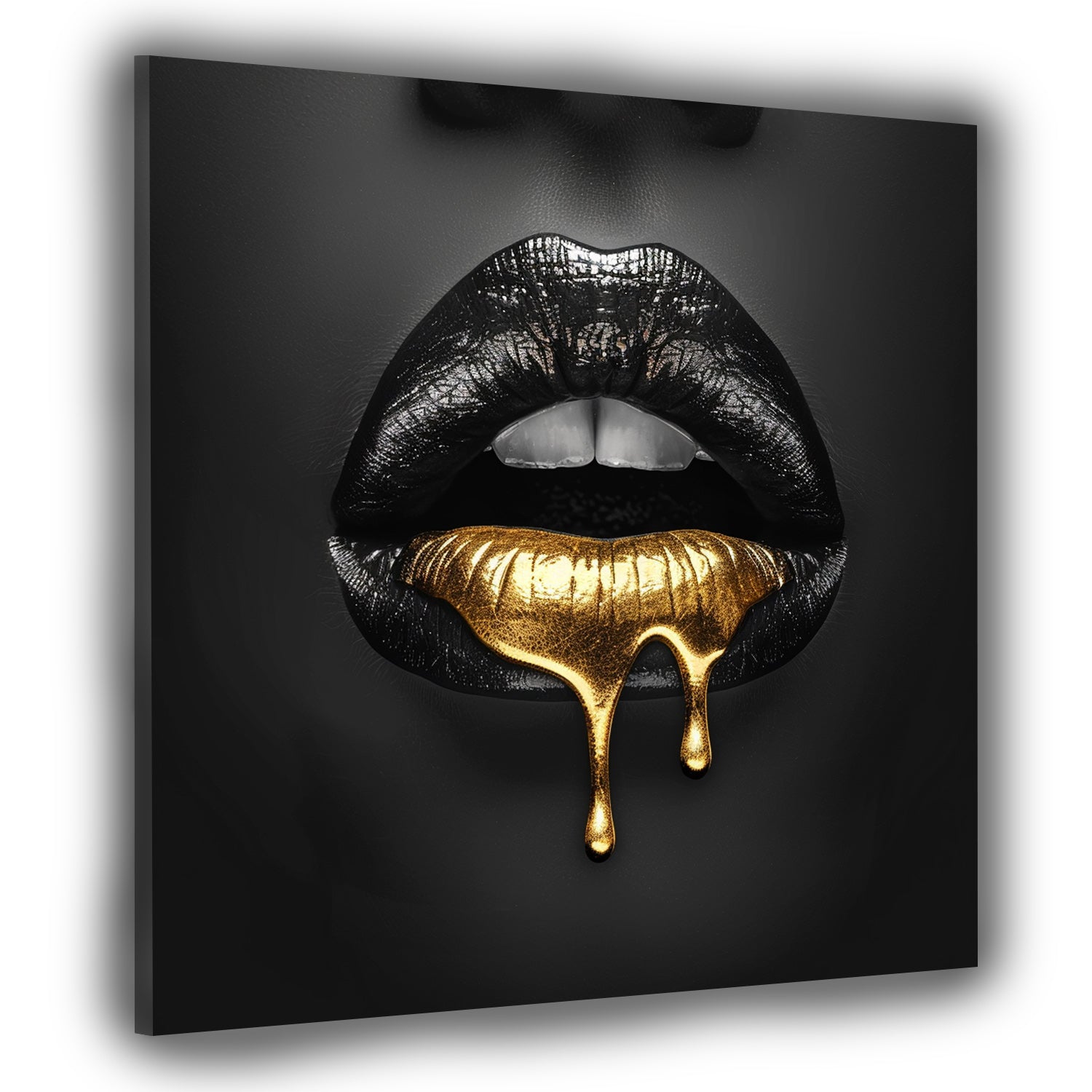 Quadro labbra nere con gocce d'oro