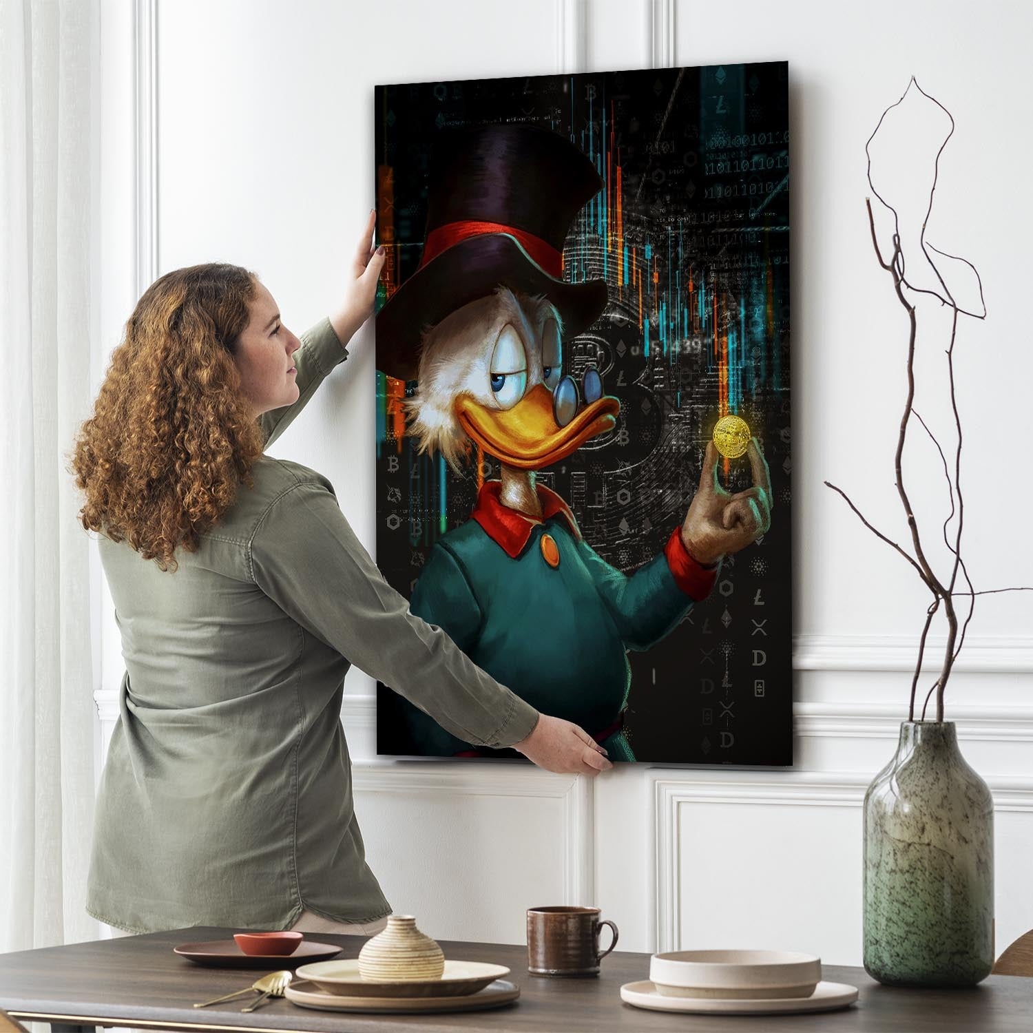 Bilddruck auf Leinwand moderne Kunst Dagobert Pop Art Bitcoin Edition, Comic, Comics, Motivation