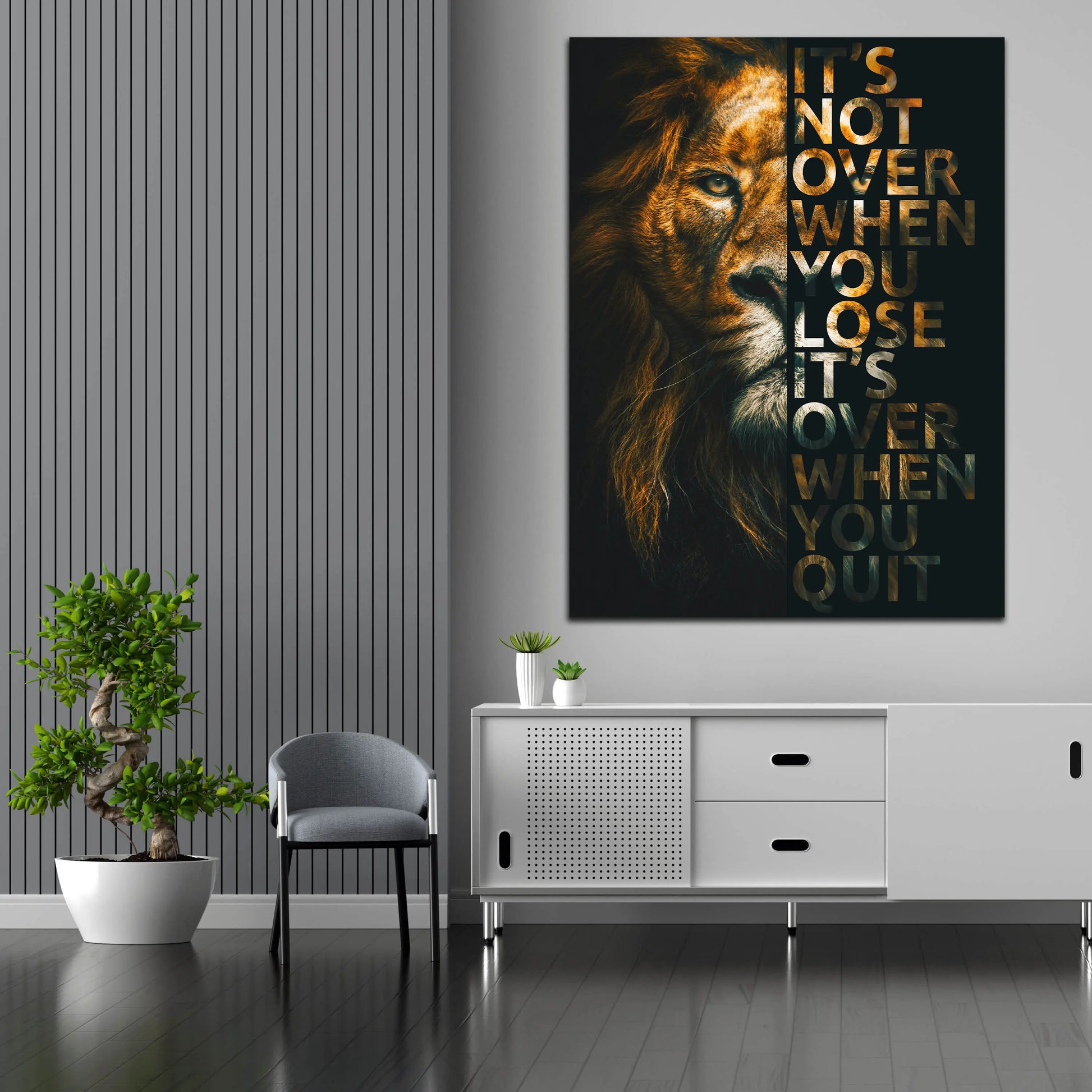 Motivierender Löwen-Leinwanddruck Es ist noch nicht vorbei, wenn Sie die braune Ausgabe verlieren