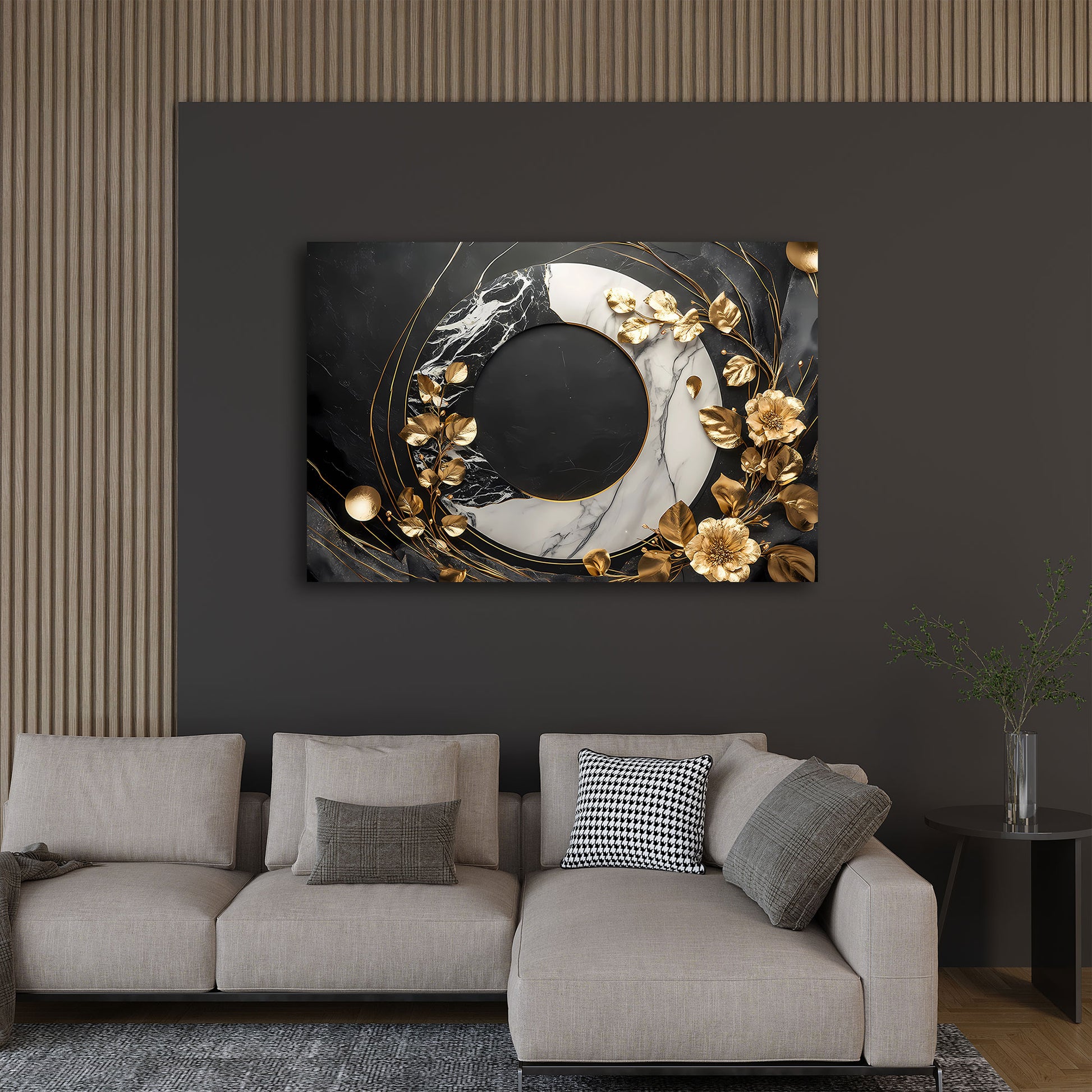Design moderno con fiori dorati e marmo elegante quadro