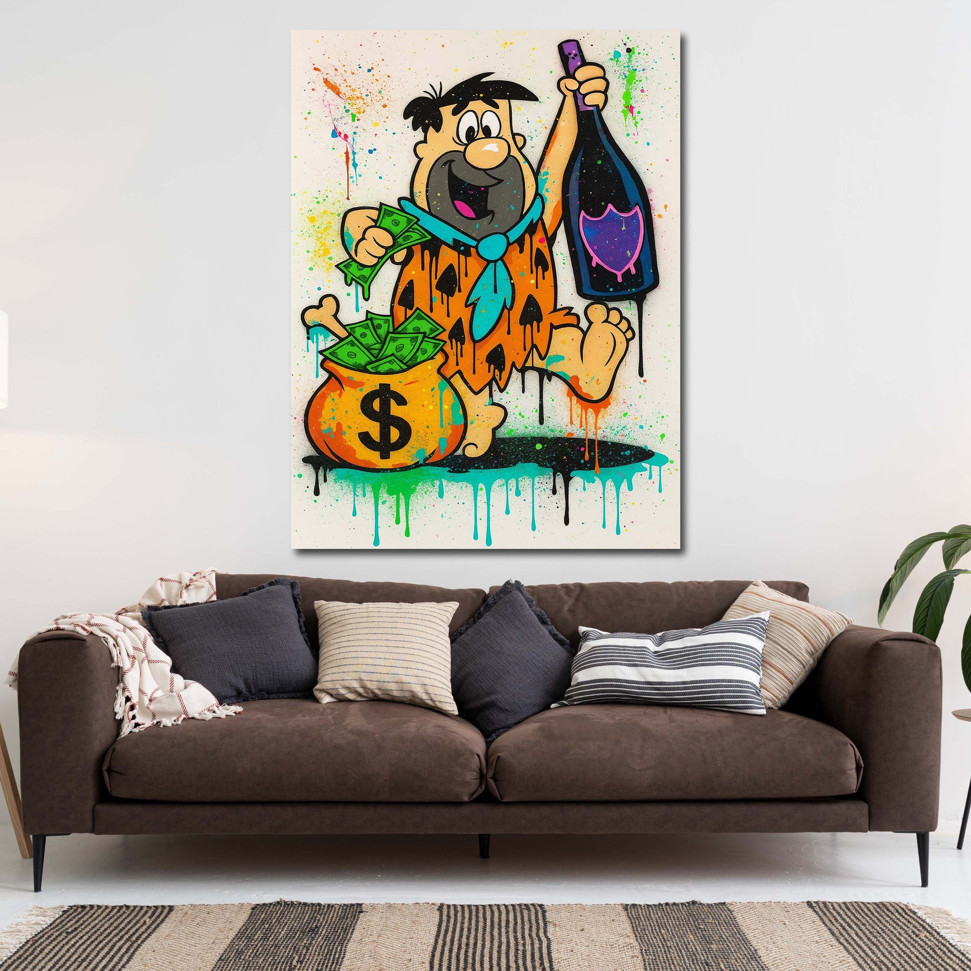 Pop Art Fred personaggio cartoon soldi champagne quadro