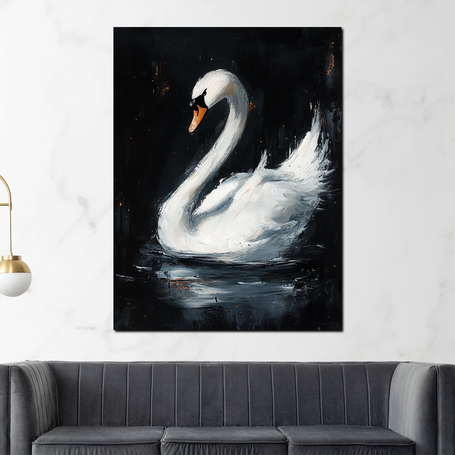 Quadro cigno elegante in acqua scura grazia natura stile moderno