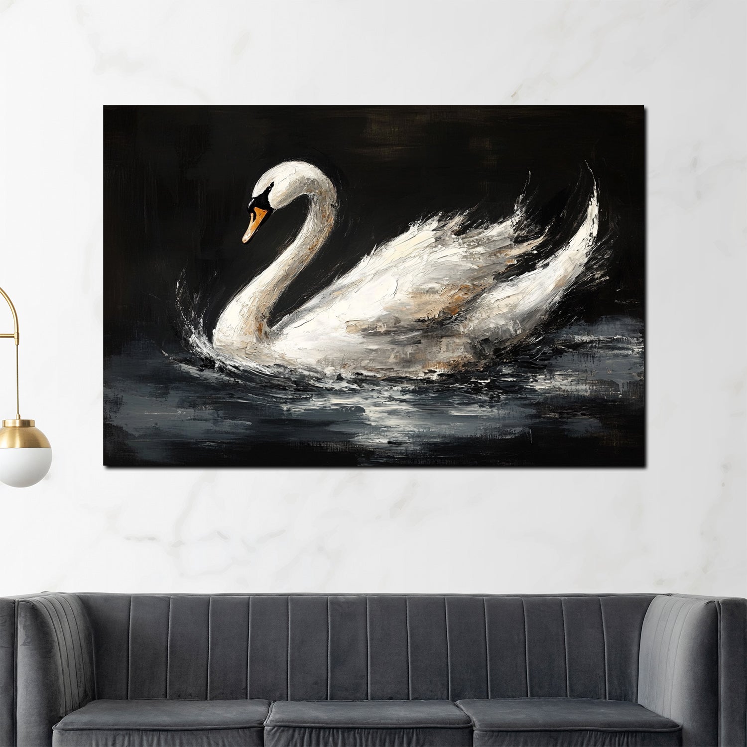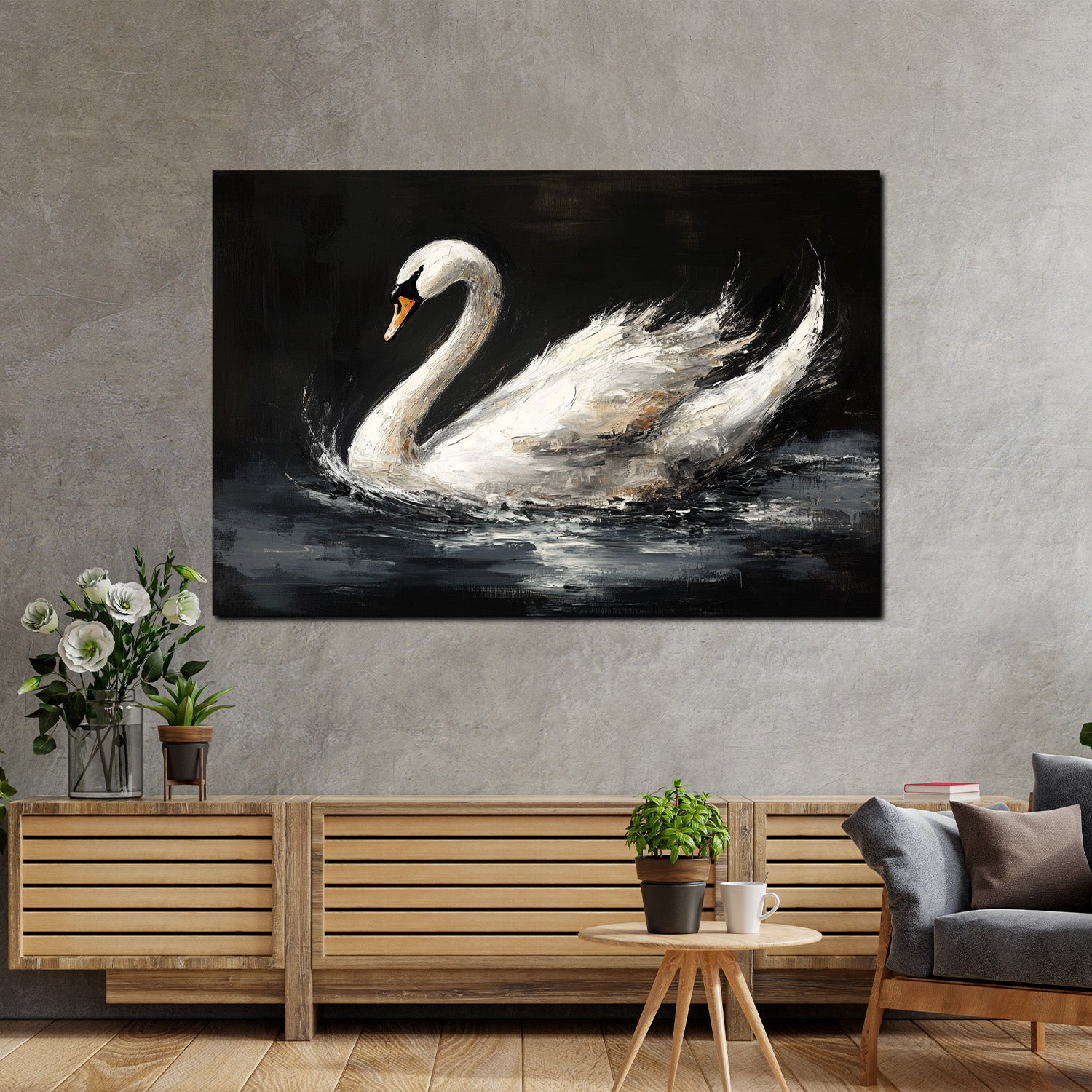 Quadro cigno elegante pittura fluida sull'acqua stile moderno