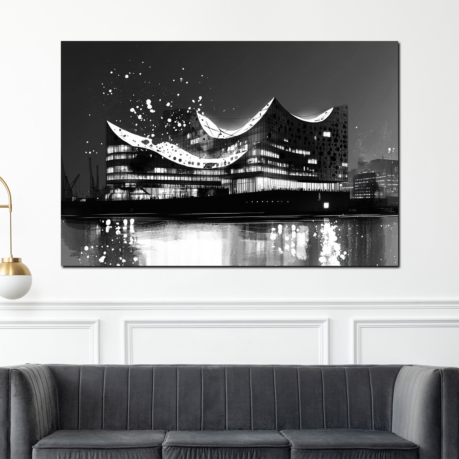 Quadro città amburgo elbphilharmonie architettura bianco e nero riflesso artistico