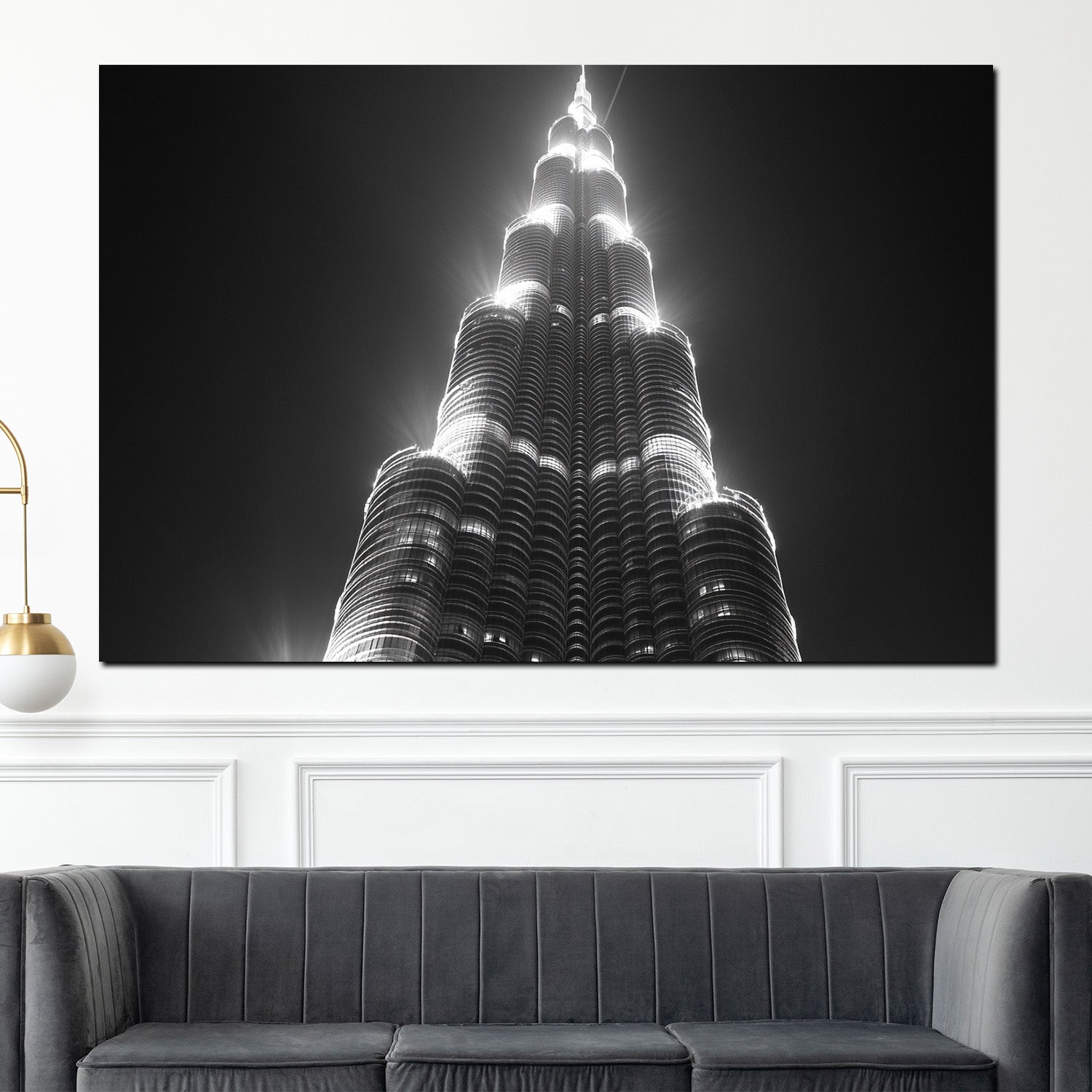 Quadro città dubai burj khalifa architettura bianco e nero prospettiva notturna