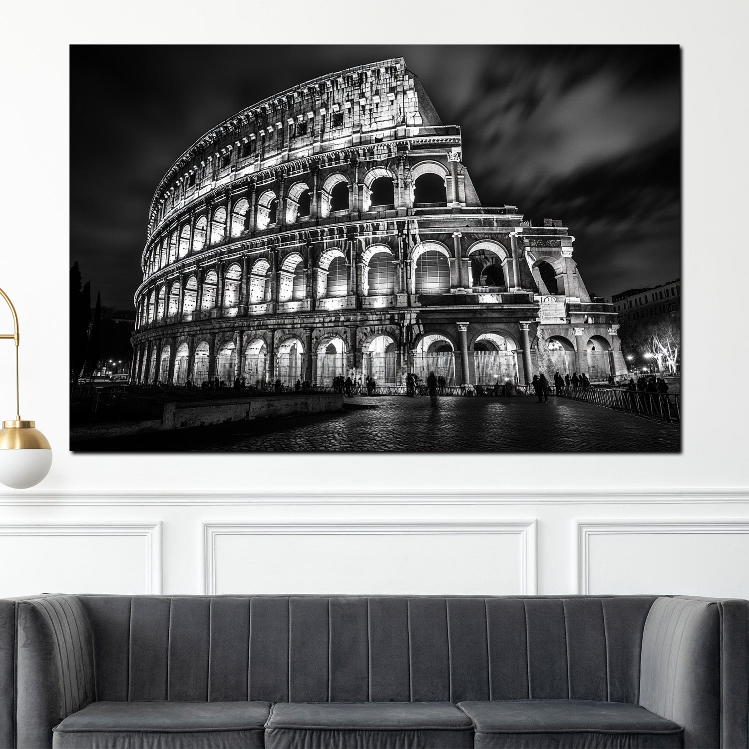 Quadro città roma colosseo architettura notturna bianco e nero storico