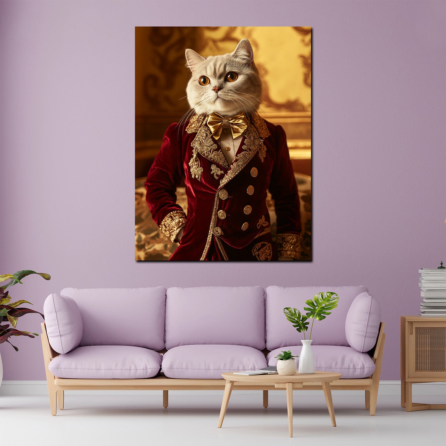 Quadro gatto bianco elegante in abito barocco nobiltà lusso stile moderno