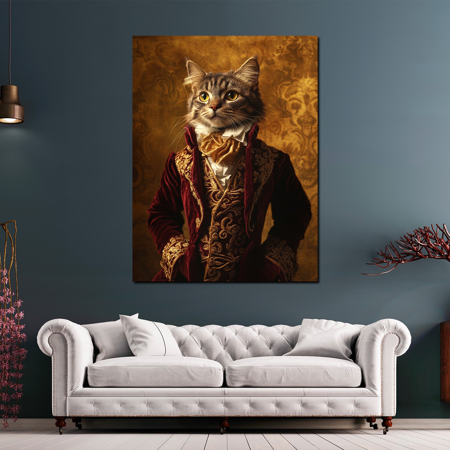 Quadro gatto elegante in abito barocco nobiltà lusso vintage moderno