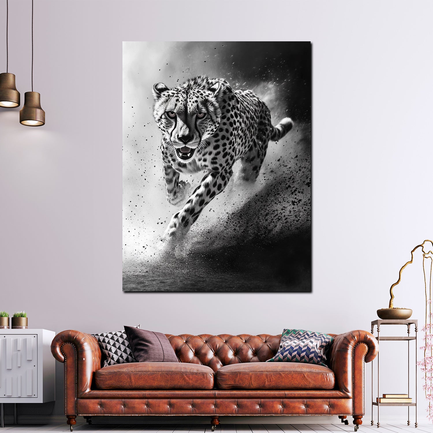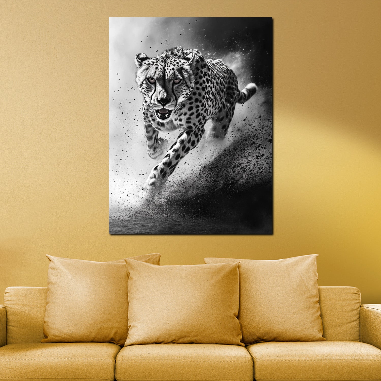 Quadro ghepardo bianco nero velocità potenza eleganza