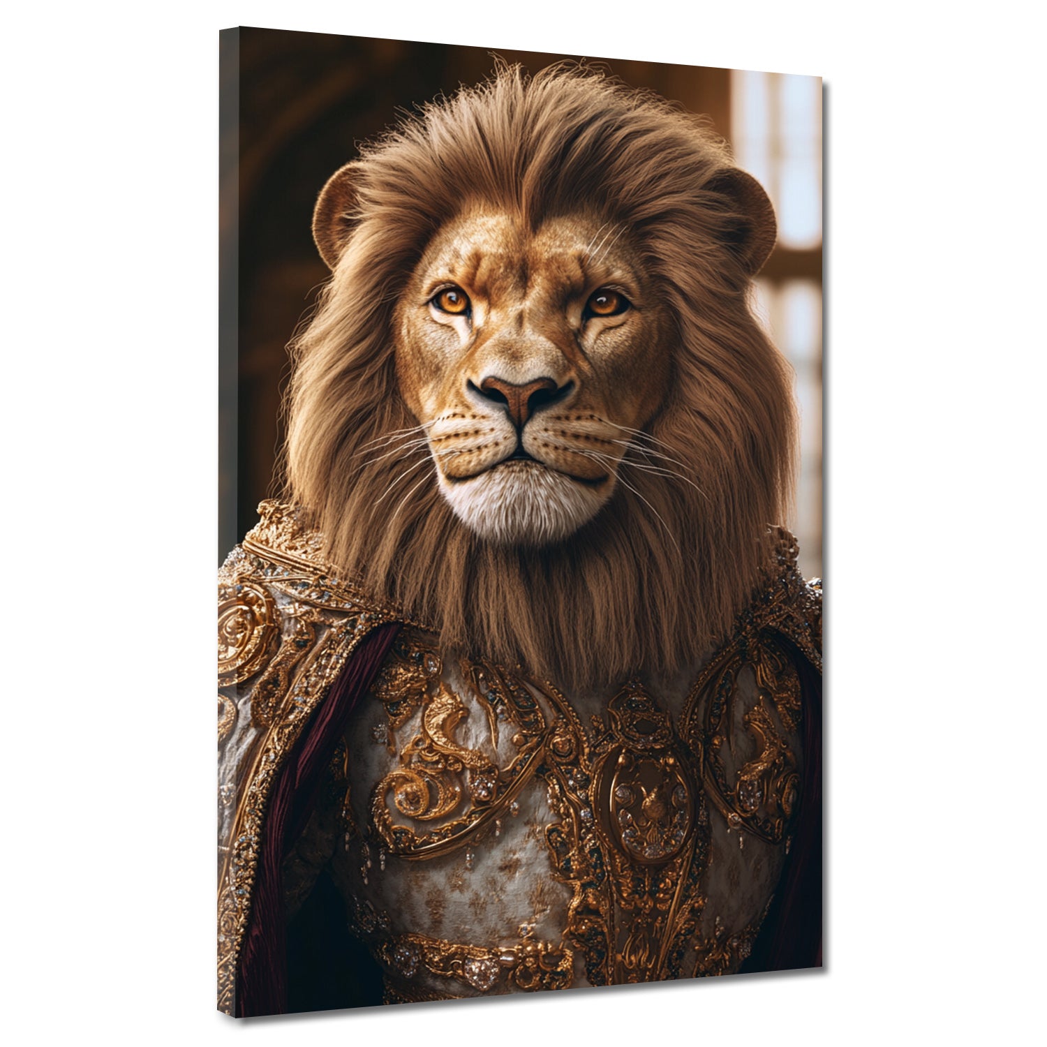 Quadro leone regale in armatura dorata nobiltà forza moderno