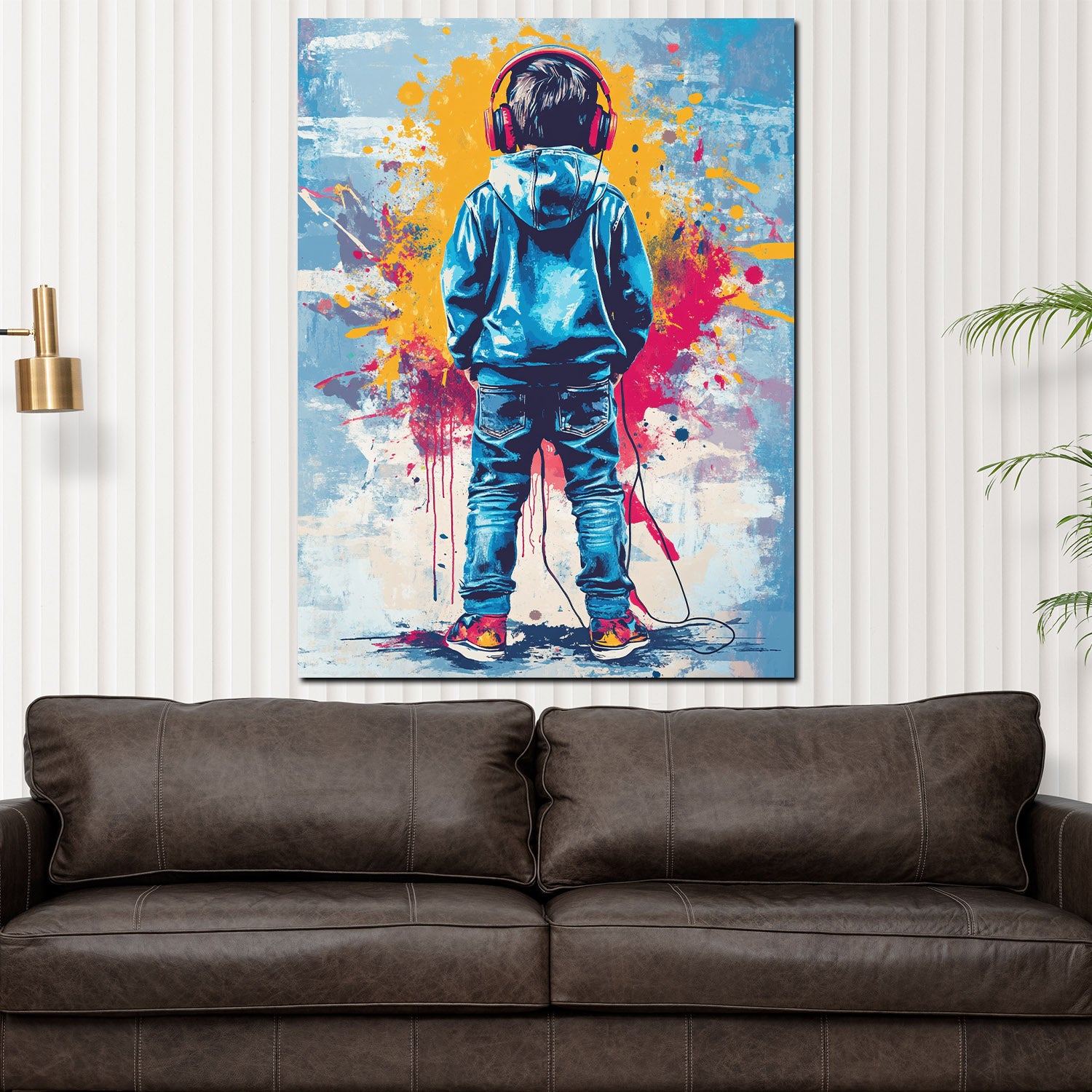 Quadro pop art bambino cuffie colorato