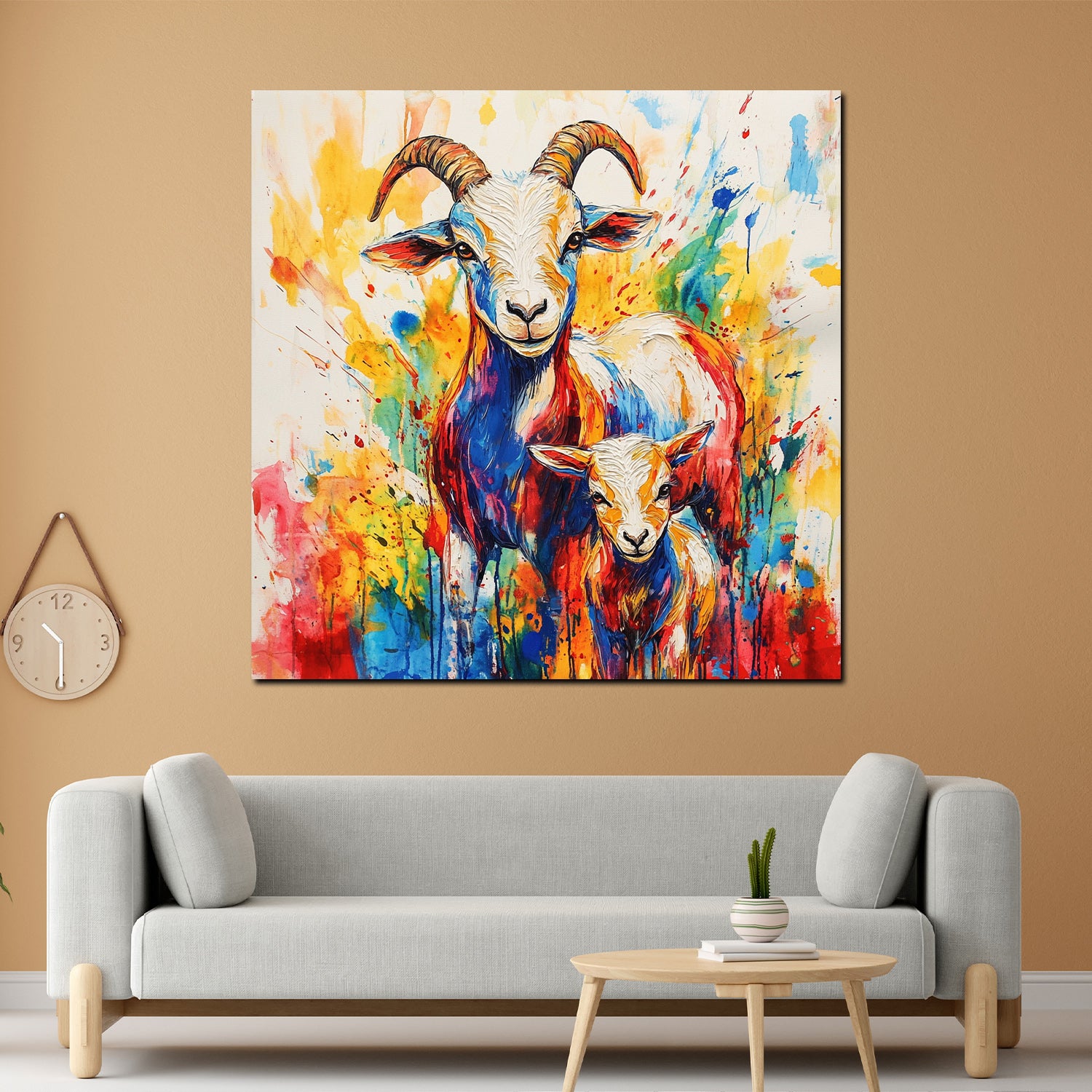 Quadro pop art capra con cucciolo colorato vivace moderno