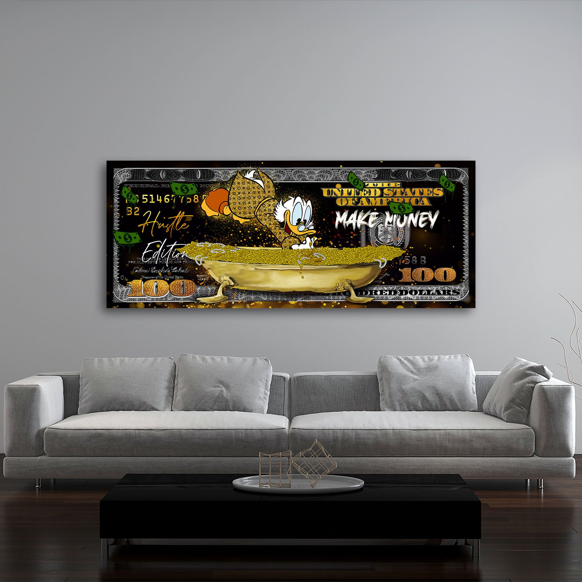 Quadro stampa su tela Zio Paperone Pop Art Comic Gold Tube, 100 Dollar