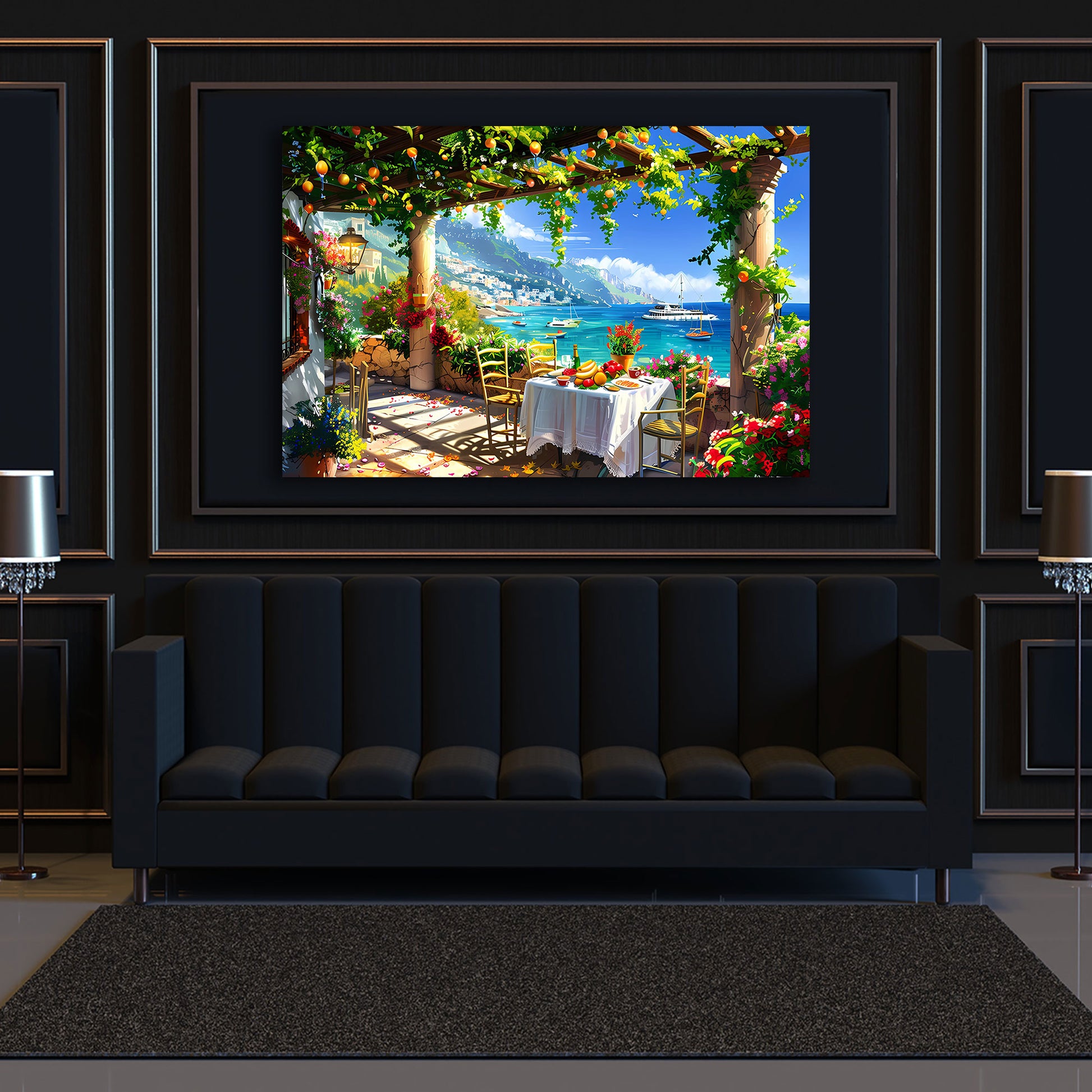 - Stampa su tela (400 g/m²) – su telaio in legno certificato, per colori intensi e duraturi.